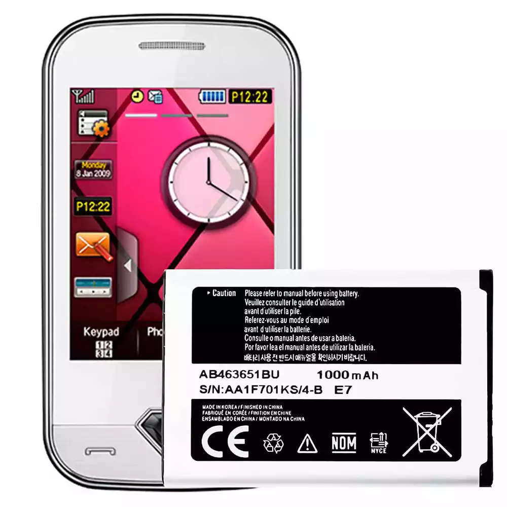 Batería AB463651BU para Samsung S3650 Corby/Ch@t 322/S3650 Genio Touch/C3222 Ch@t 322 DUOS/S7070 Marina/S7070 Diva La Fleur S7070/s3370 Corby 3G/Acton/Pocket3G Star Nano 3G