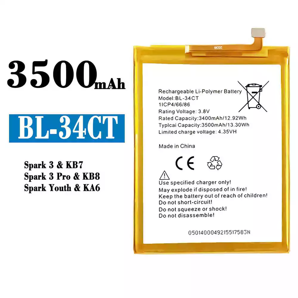 Batería BL-34CT para Tecno Spark 3 / KB7 / Spark 3 Pro / KB8 / Spark Youth / KA6