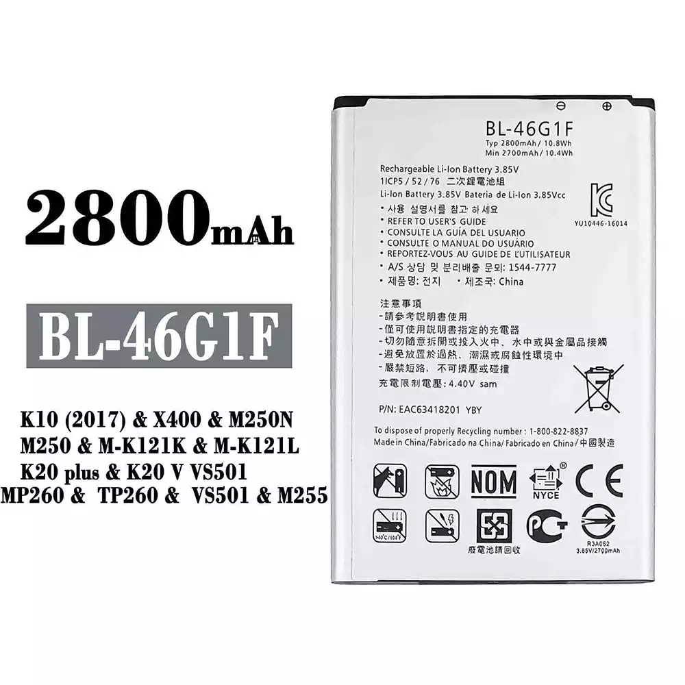 Batería BL-46G1F para LG K10 (2017) / X400 / M250N / M250 / M-K121K / M-K121L / K20 plus / K20 V VS501 / MP260 / TP260 / VS501 / M255