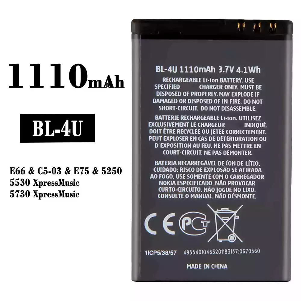 Batería telefono celular BL-4U para Nokia E66 / E75 / 5250 / 5530 XpressMusic / 5730 XpressMusic