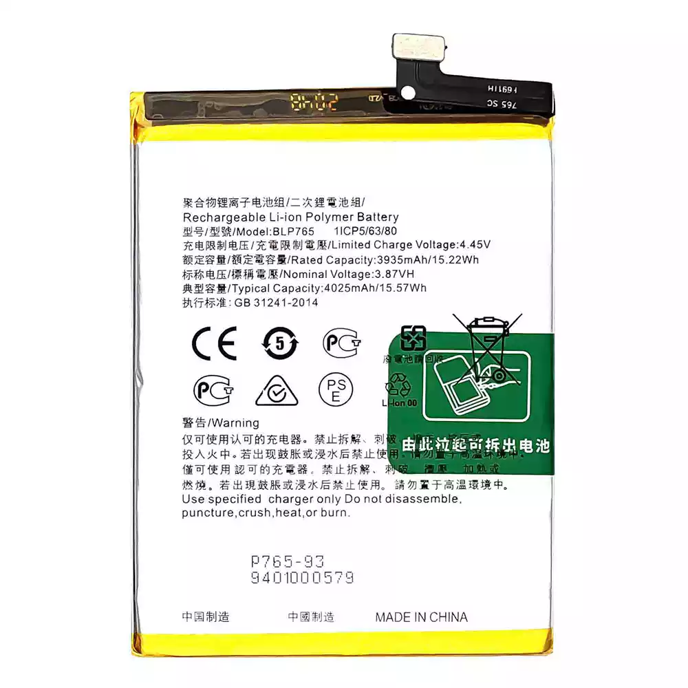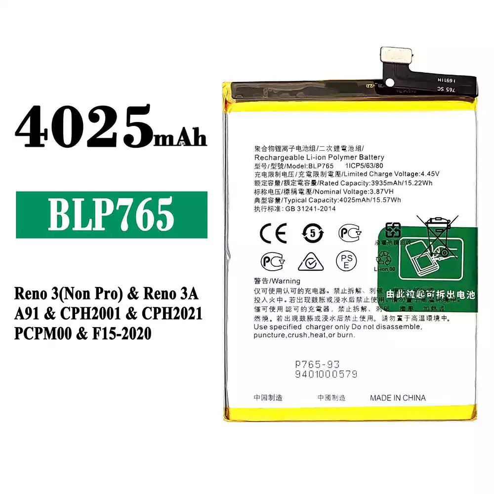 Batería BLP765 para OPPO Reno 3(Non Pro) / Reno 3A / A91 / CPH2001 / CPH2021 / PCPM00 / F15-2020