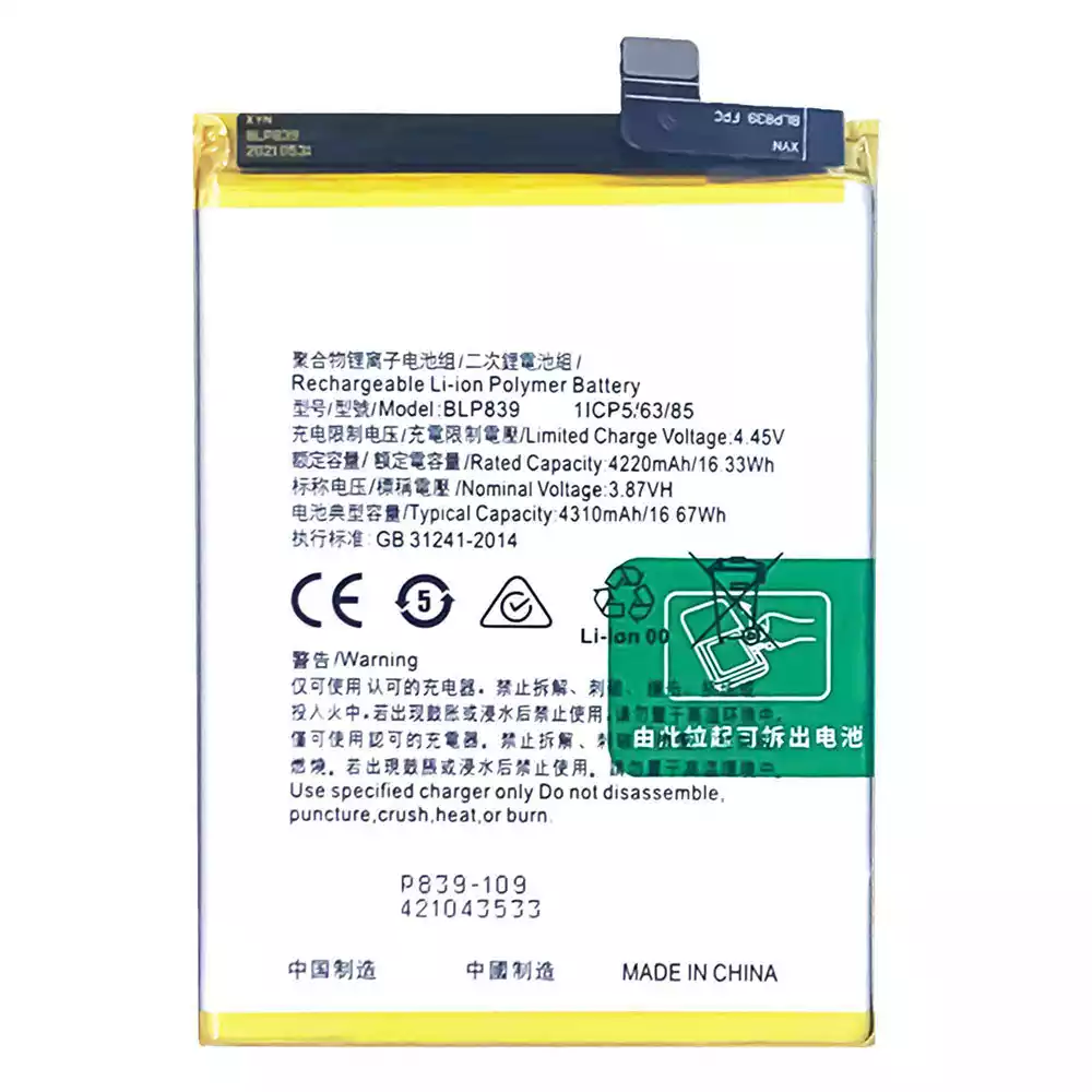Batería BLP839 para OPPO A95 5G / A94 5G / Reno 5Z 5G / Reno 6Z / PELM00