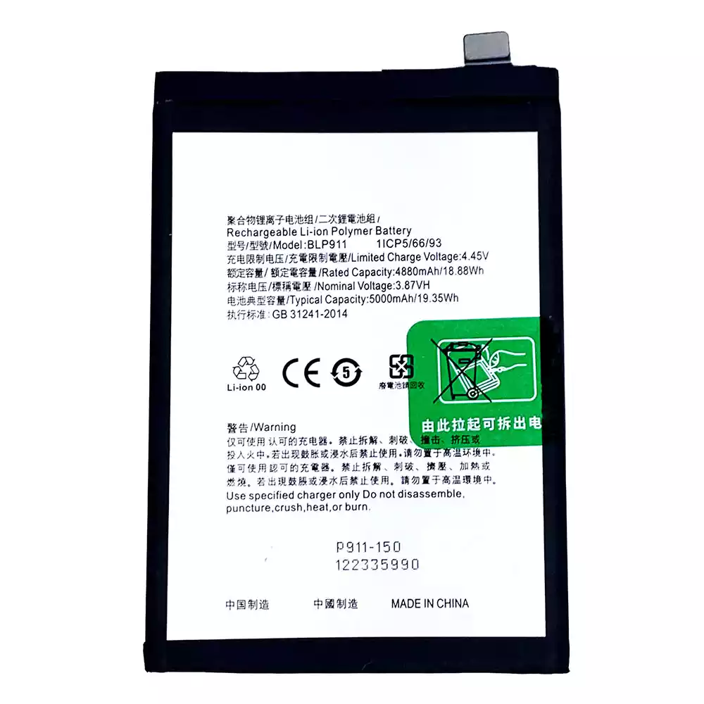 Batería telefono celular BLP911 para OPPO Realme 9i /Realme K10 /Realme 9 Pro
