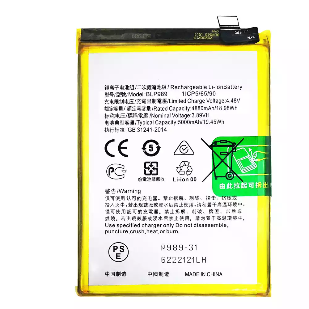 Batería BLP989 para OPPO A98 5G /1+nord N30 5G /Nord CE 3 Lite /OnePlus Nord N30 5G /CPH2389 /OnePlus Nord CE 3Lite /CPH2467 /CPH2465