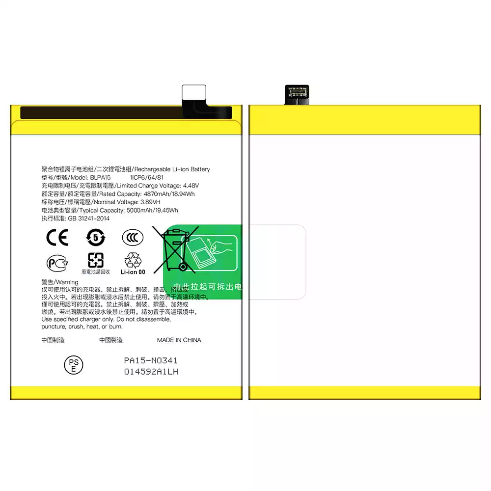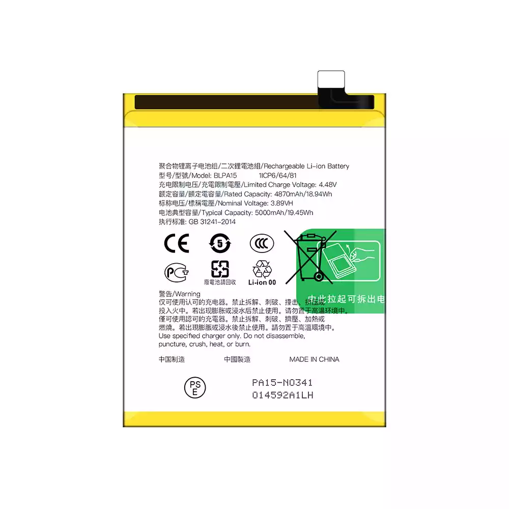 Batería BLPA15 para OPPO Realme 11 5G / Realme 11Pro 4G 5G / Reno 11 5G / Reno 11 Global version