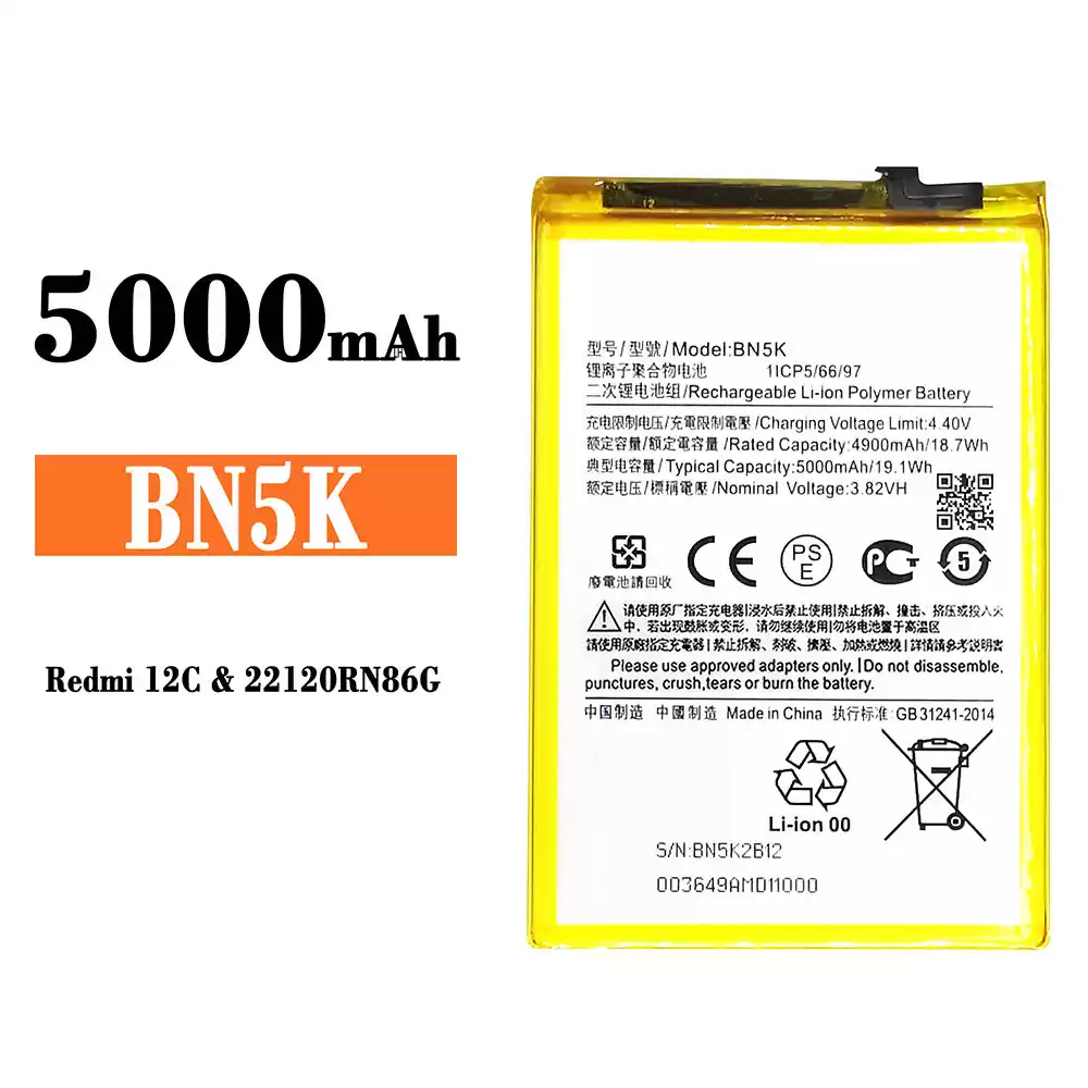 • Batería telefono celular BN5K para Xiaomi Redmi 12C
