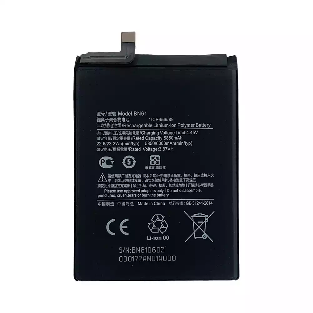 Batería BN61 para Xiaomi POCO X3 / MZBO7ZOIN / MZBO7Z1IN / MZBO7Z2IN / MZBO7Z3IN / MZBO7Z4IN / MZB9965IN / M2007J20CI