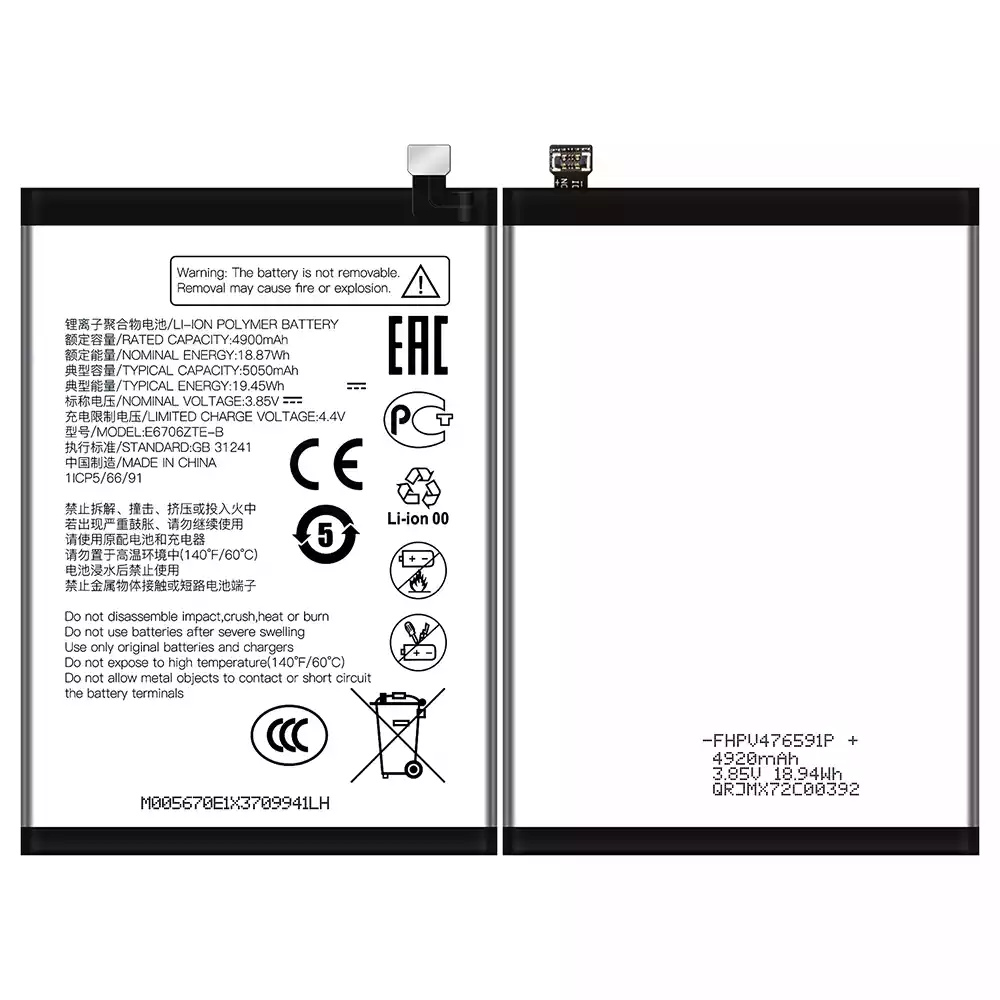 Batería E6706ZTE-B para ZTE Axon 60/60 Lite