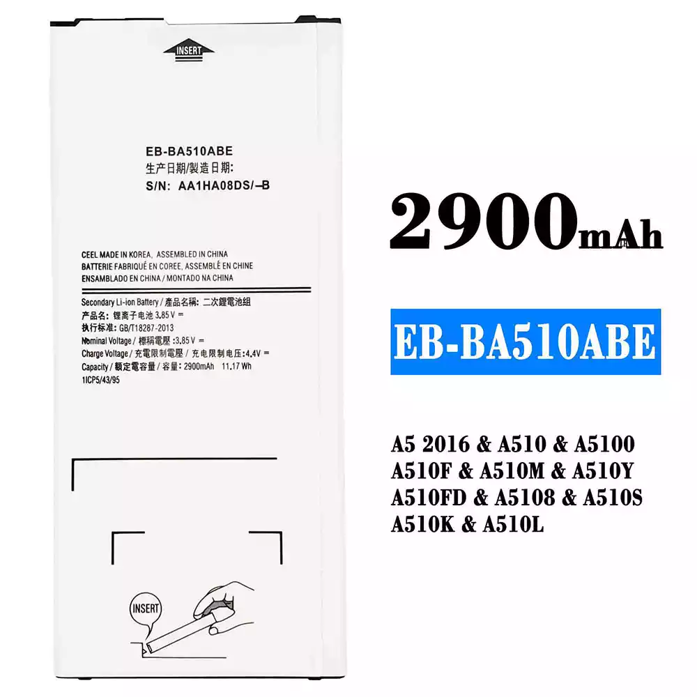 Batería EB-BA510ABE para Samsung A5 2016/A510/A5100/A510F/A510M/A510Y/A510FD/A5108/A510S/A510K/A510L