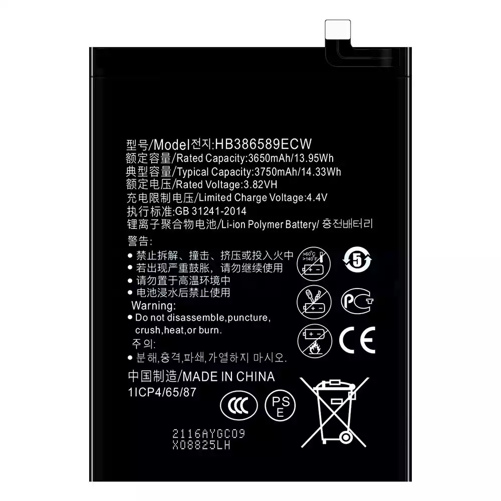 Batería telefono celular HB386589ECW para HUAWEI P10 PLUS / Nova3 / Honor 8X / View 10 Lite / P10 Pro / Nova 3a / Mate 20 Lite / Nova4 /Honor 8A / Honor 20 / Honor View 10 / Nova 5T