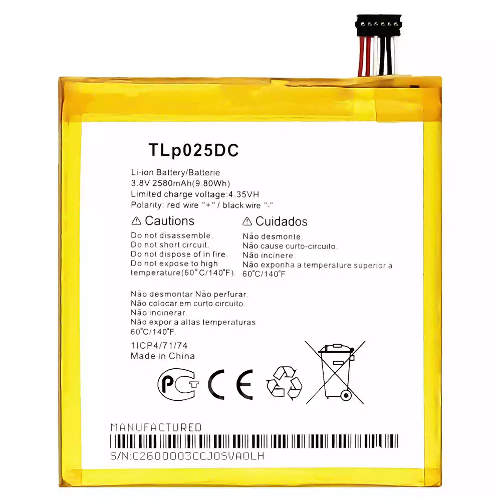 Batería TLp025DC para Alcatel Pixi4 6.0/OT-8050/8050E/8050D/9001/9001X/5098O